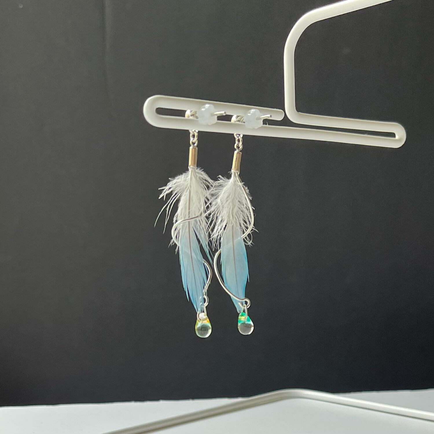 #ブルー #青 #blue #グレー #明灰色 #灰色 #gray #lightgray #ピアス #イヤリング #プチギフト #羽根アクセサリー #羽アクセ #羽根ピアス #羽根イヤリング #無染色 #undyedfeather #naturalcolor