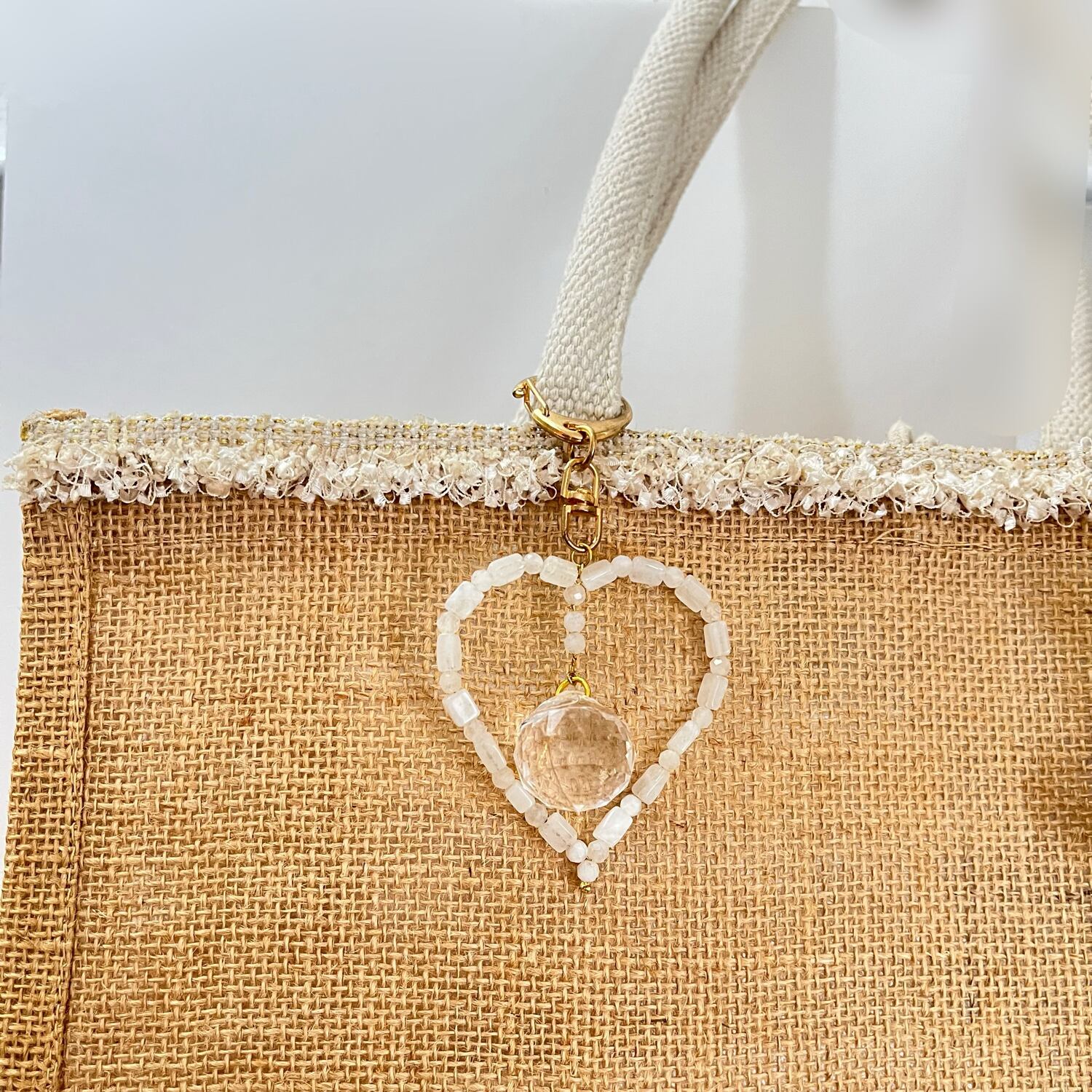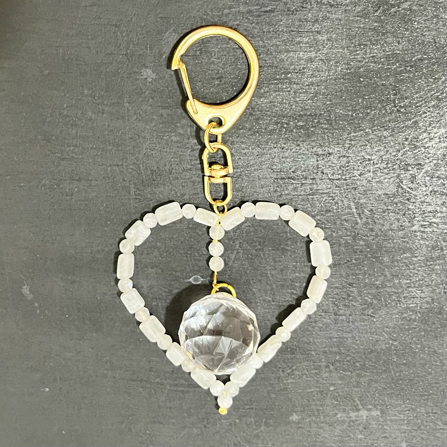 説明:心を穏やかにし、愛情を引き寄せる力を持つと言われるムーンストーンを使用したバッグチャーム(キーホルダー)です。