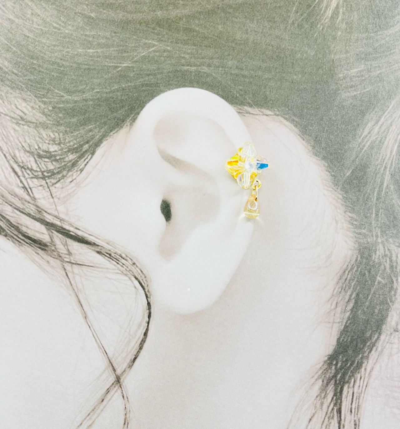 軟骨ピアス用に、一粒ピアス以外のデザインでかつ他のピアスをジャマしない長さとのオーダーでお作りしました。