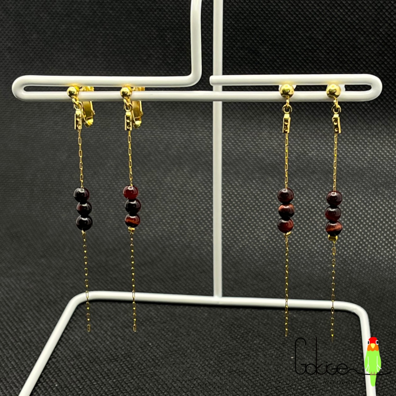 レッドタイガーアイ チェーンピアス/イヤリング:asp014【商売繁盛、金運に】《アレルギー対応》